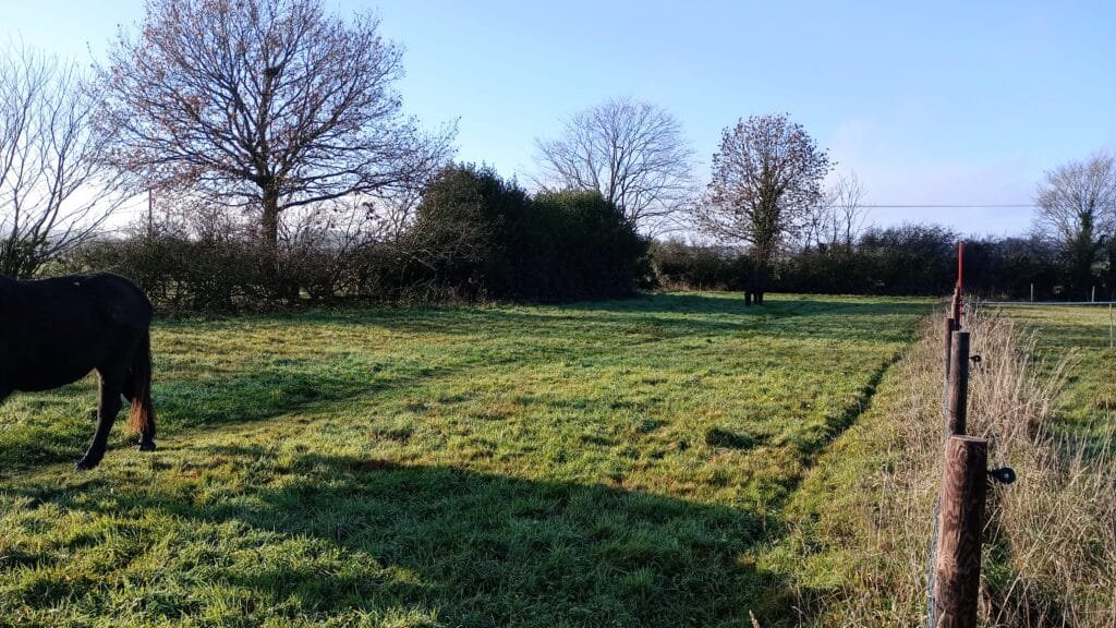 The very top field is our most southern field and the highest. Generally it stays fairly dry and so long as the horses don’t cut it up too much it works pretty well through the winter period.